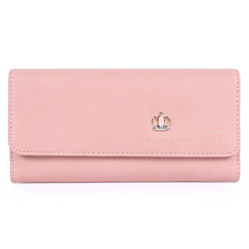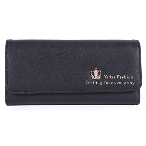 This Women¡¯s Wallet features with faux leather with a button closure for your important items safe inside. This wallet has 1 window ID, 9 slip card slots for your credit cards and bank cards.3 full length slit pockets for cash, important papers, event tickets, and receipts.Purse Approximate Dimensions: 7.5"L X 3.7"W X 1"H (19cm X 9.5cm X 3cm).A zippered pocket inside offers additional storage for a spare or small accessories.