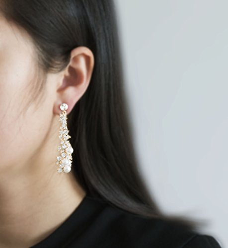 -. Title : Waterfall Earrings-CIShop UltraSparkling Long Pearl earrings with Diamonds-Supper Beauty