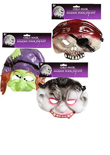 -. Feature : Half-face children's masks make it easy for kids to yell "tick-or-treat"! Made of flexible PVC, these scary Halloween masks features openings at the eyes and nose for easy sight and breathing. / Plus, they have colorful details and elastic straps for a secure fit. / Ideal for trick-or-treating, Halloween parties, dress up, and resale. / Case includes 1 children's half-face Halloween masks assorted among vampire, witch, and pirate. / One size fits most.