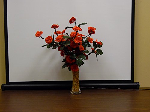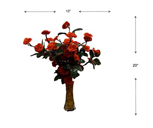 The red rose flower branch mounted in acrylic vase with rocks. The floral arrangement stands approximately 20" high and has a 12" spread at the top.
