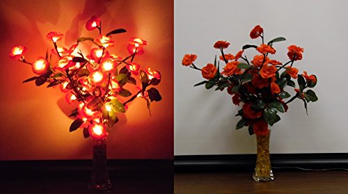This floral bouquet includes a 3V DC power supply with wall plug, component switch element, 3 foot extension cord, battery power pack with a 6 hour timer switch, and a remote dimmer switch.