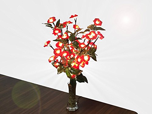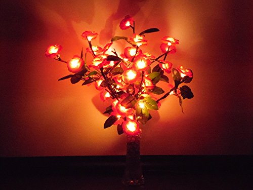 Mansa Décor, Red Rose LED Decorative Bouquet, 60 LED Elements, 25W Equivalent (With Leaves)