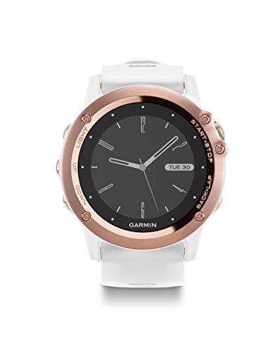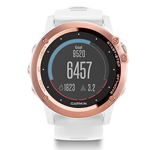 fēnix 3 Sapphire Rose Gold-tone with White Band multisport training GPS watch elegantly combines smart features for fitness tracking and personal navigation witha fashion-forward timepiece design. Stainless steel EXO antenna provides dual GPS and GLONASS reception for better, more reliable reception in challenging environments. With a sunlight-visible, high-resolution Garmin Chroma Display, sapphire lens and soft, bright white silicone band, fēnix 3 Rose Gold-tone watch makesa statement on the trail and off. Feature sets for fitness training, activity tracking and personal navigation offer every option for workouts, performance metrics, outdoor adventures or everyday use. The Connect IQ platform lets you customize watch faces, data fields, widgets and apps.Feature