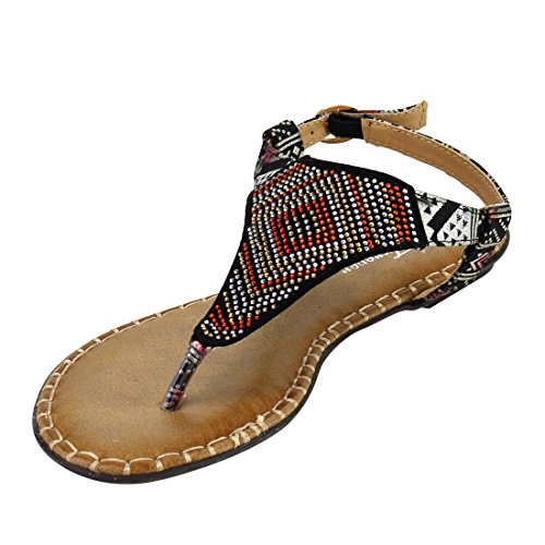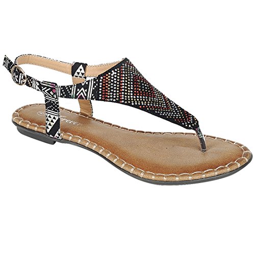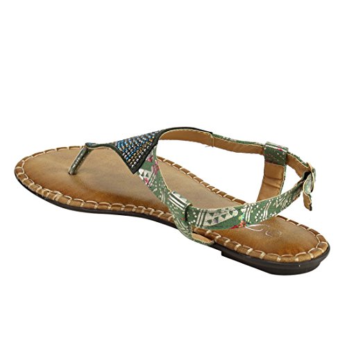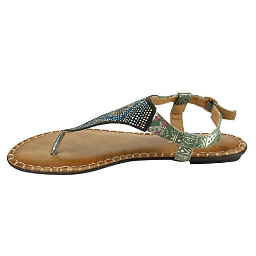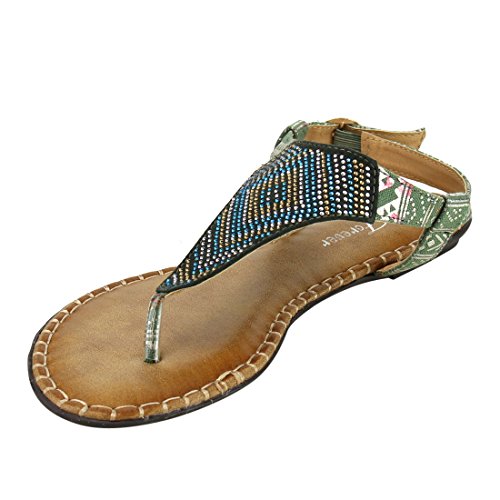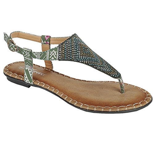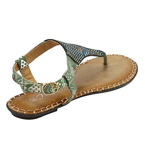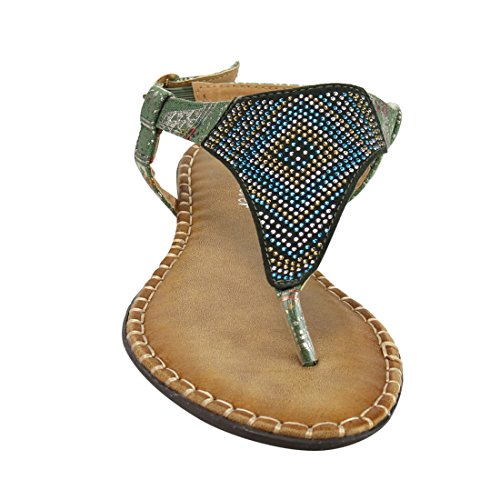 Product DescriptionStylish detail and a sleek silhouette make the this Flat Sandal a must have.Featuring rhinestone detailing, t-strap construction and buckle ankle strap. Get that zing in your wardrobe wearing this flat!0