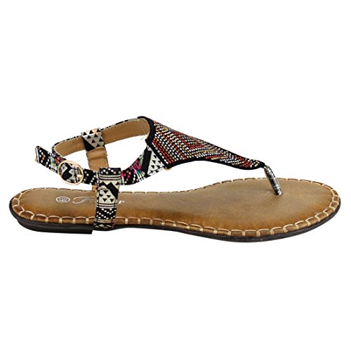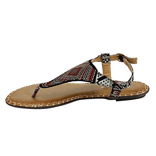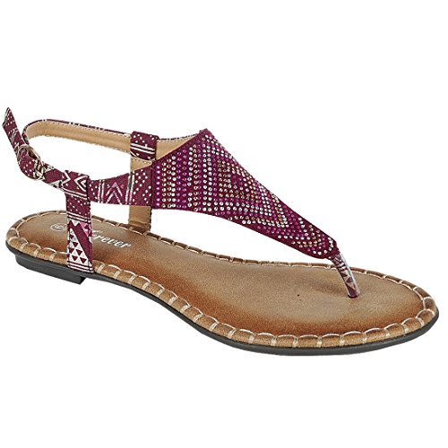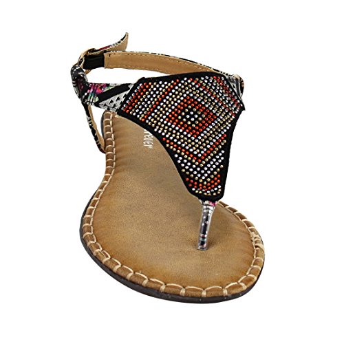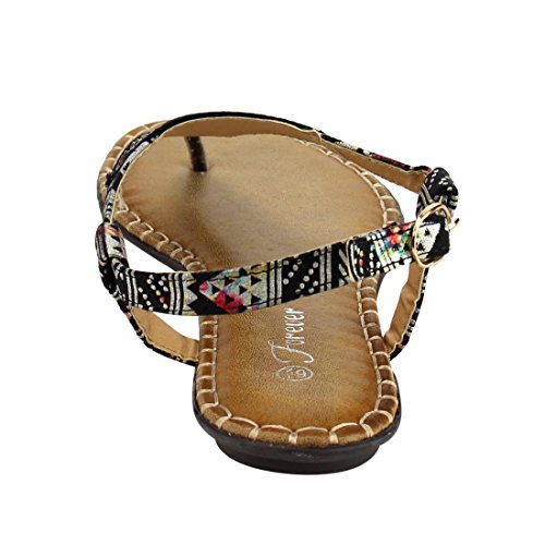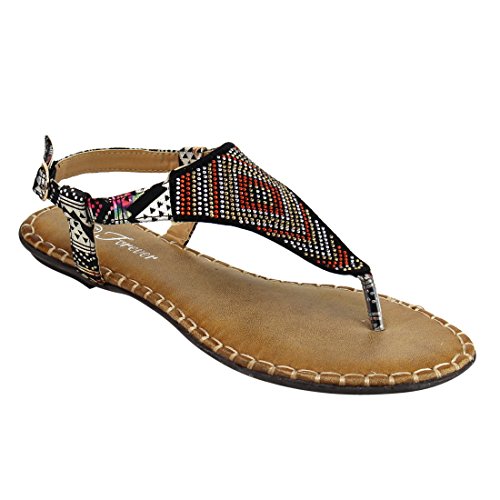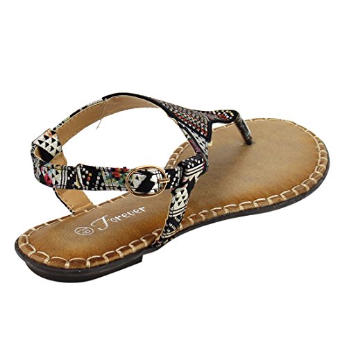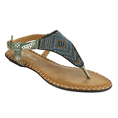 Forever IF92 Women's Rhinestone Stitched T-strap Thong Flat Sandal