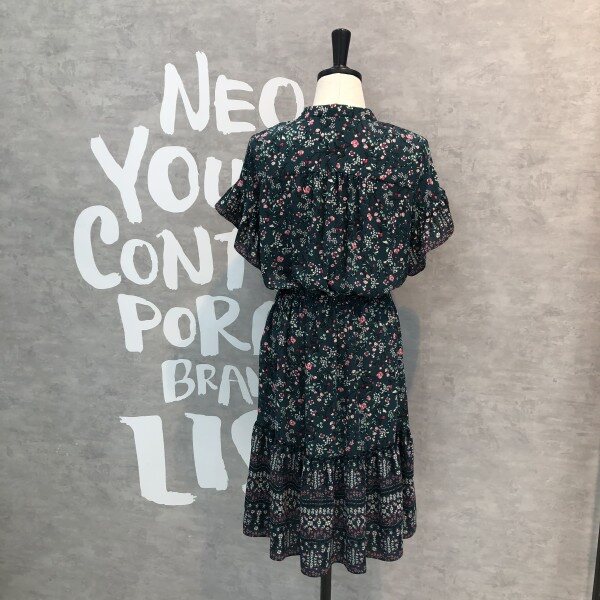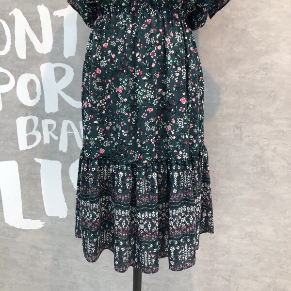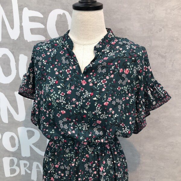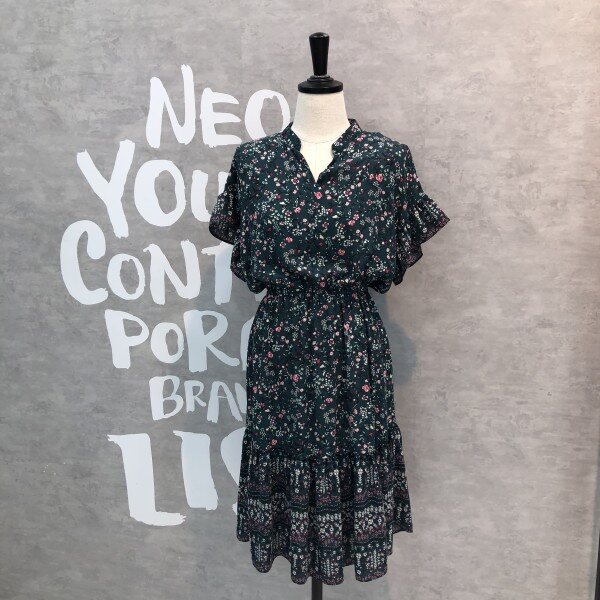 슬리브와 헴라인에 프릴 디테일이 러블리한 플라워 프린트의 원피스입니다
