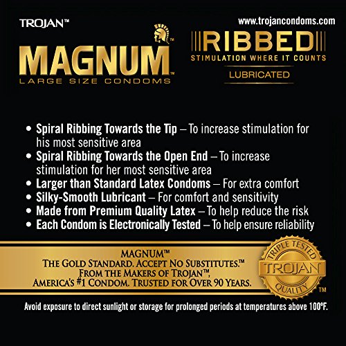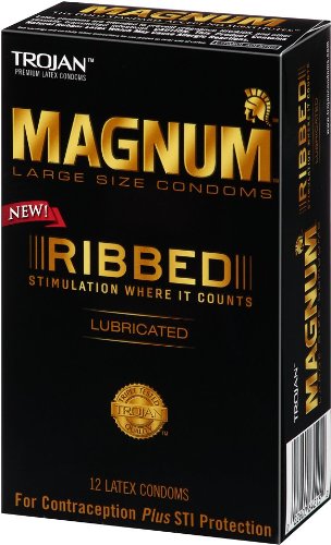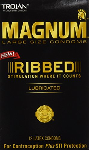 Trojan Magnum Ribbed Lubricated Condoms, 12 Count