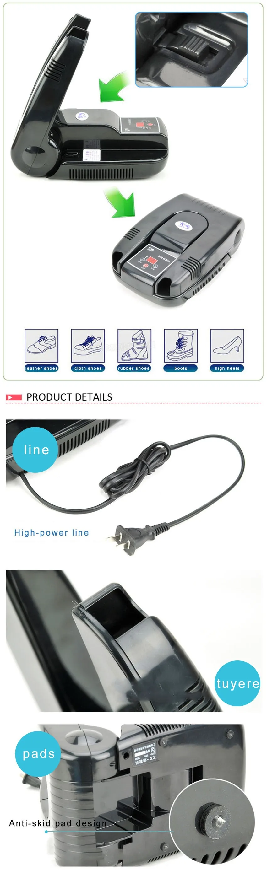 Fits for leather shoes, cloth shoes, cotton shoes, rain boot, etc.