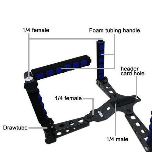 Can be used in different ways: extend the rear arm for shoulder support and adjust to use as one hand DV/Camera set, it can suit the way you needed; All hand grips and joint are rotatable and adjustable.