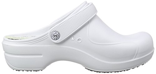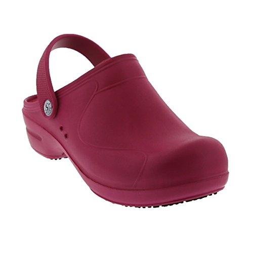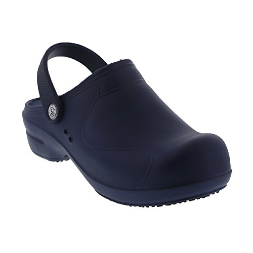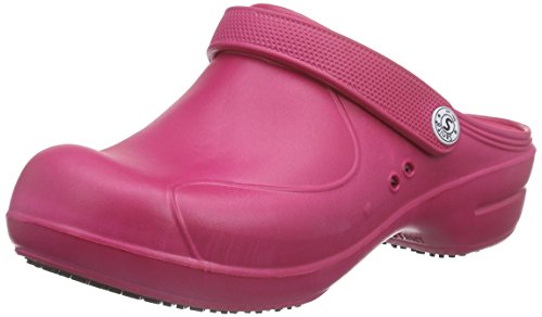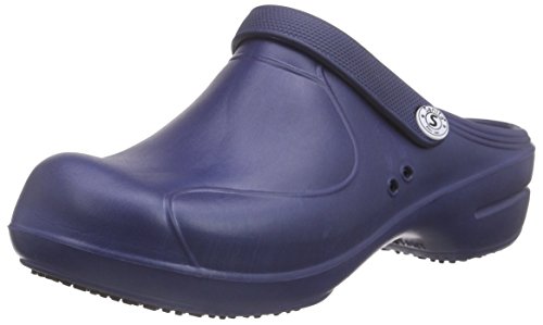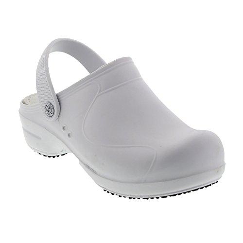Product DescriptionEva totally molded feather light and easy care clog, all day comfort featuring weave embossed pattern and smooth, silky plain finish, a-line cut with reversible strap.0