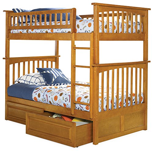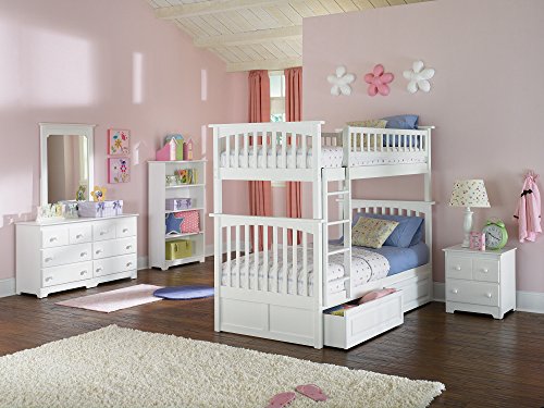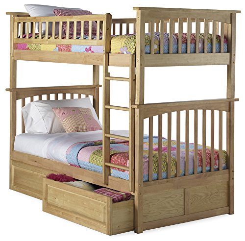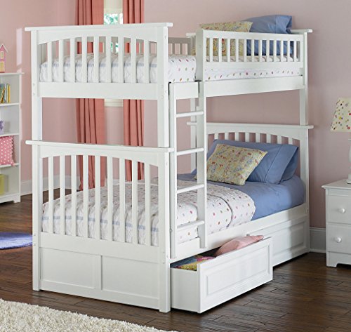Constructed in solid hardwood, in four high build durable finishes, the Columbia bunk bed has a built in modesty panel and can accommodate under bed storage drawers or a trundle. With its 26 steel reinforcement points and two 14 piece slat kits, this bed is as sturdy as they come. So many sleep options and it creates convenient space in your child's room. This bed will surely become their favorite sleepy time fort and you can feel good about the quality and value.Feature