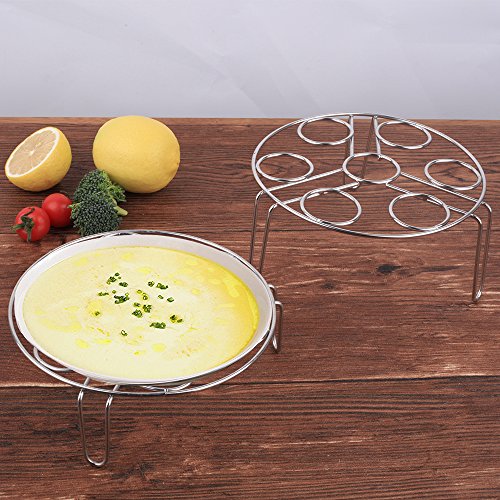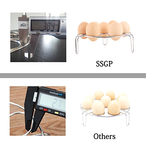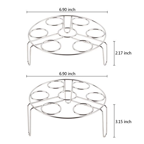 Studio : SSGP-Egg Cooker Steamer Publisher : SSGP-Egg Cooker Steamer Product Description Steam is the healthier cooking methods. Cooks your food with steamer rack can retains more vitamins, flavors, nutrients and texture than boiling, microwaving and frying is healthier. Not Oil, No More Dried Out or Burned Vegetables, Seafood. It is one of the Most Nutritious Ways to prepare your meals! Applications: -Great for making hard boiled eggs, the special egg hole will fix egg stable in put, conveniently cooks 1 to 7 eggs the same time in a few minutes -Our stainless steel cooker insert is a must have accessory for instant pot models Fits IP-DUO50, IP-DUO60, IP-DUO80, IP-LUX60, IP-LUX80. Strong heat resistance durable and oven safe -Great for making hard boiled eggs and anything You Wish To Steam. Also use it as steam rack, egg steam rack, cooling rack, pot stand rack,etc Size: 1-Piece 6.9 x 6.9 x 2.17 inches 2-Piece 6.9 x 6.9 x 3.15 inches Package: 2PCS Egg Steamer Rack 0