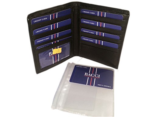 -. Binding : Apparel -. Brand : Bacci -. Department : mens -. Feature : Very stylish, BiFold Design, Made from high quality steerhide leather / 1 windowed ID Slot; 13 interior card slots; Three currency compartments / Removable sleeve with 8 card or photo slots / 5 inches x 4 inches x 1 inch thick folded / Made in India -. Model : 1606 -. ProductGroup : Apparel -. ProductTypeName : ACCESSORY -. Title : Bacci Hipster Premium Leather Wallet with ID Window and Credit Card Sleeve