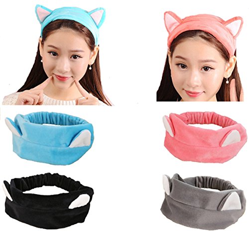 -. Title : Toptim Women Makeup Shower Headband Cat's Ear Hair Band Sports Hood for Yoga or Travel Sweatband Girls Head Wrap 4 Pack