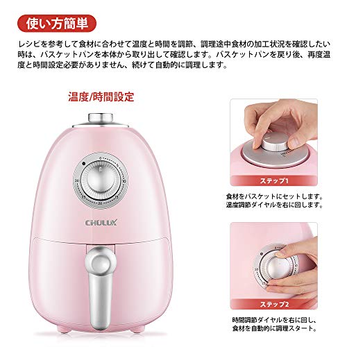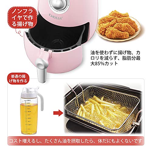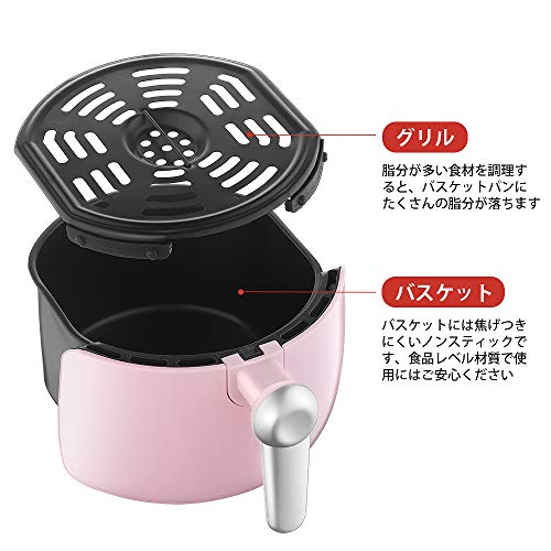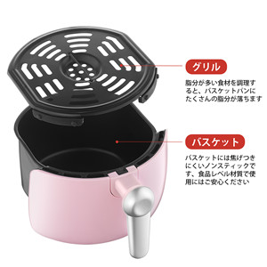 健康的なローカロリー食生活 グリル:脂分が多い食材を調理すると、バスケットパンにたくさんの脂分が落ちます。脂肪分最大85%カットします。 バスケット:バスケットには焦げつきにくいノンスティックです、食品レベル材質で使用にはご安心ください。 お手入れもらくらく 油を使わないので、熱い油の後処理や油汚れをきれいに掃除するテマは一切なし、バスケットをサッと丸洗いするだけでお手入れ完了です。本体以外は食洗機も問題ないです。 本体をふきんで拭いてきれいにしてください。 | 高速空気循環技術 螺旋熱風で、エアサーキュレーションの技術です。最高200度の熱風を上から下へ高速で循環、食材全体を一気に過熱することで、美味しい食感を実験させます。 熱と空気の対流を加速、食材の油で表面を均一に過熱します。 | 梱包内容 本体*1 取扱説明書*1 レシピ*1 |