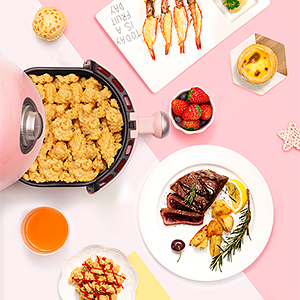 様々な食材を簡単に調理、油を加えず揚げることが出来ます。
