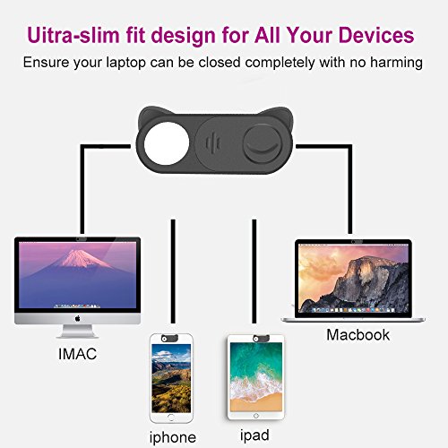 -. Feature : 【FASHION & ULTRA SLIM DESIGN】Only 0.03inches Thin. It can stay affixed to a glossy screen to ensure your laptop can be closed Completely from any harm. It makes your devices look more charming and unique. Also,here are Replacements for the adhesive in the package. / 【STRONG ADHESIVE & DURABLE】Webcam Cover is made from Dense High Quality ABS Meterial with strong adhesive. Moreover,it's Easy to attach on and off whenever Without any residue leave. You just only need tear off Back 3M Tape,then stick it on your devices. / 【FIT ON MOST DEVICES】Compatible with most webcams included Computers, PS4, Laptops, Desktops and Tablets. Such as Macbook Pro,Macbook,Mac,Surface Pro,iPad,iPhone and Android. What's more,it moves very Smoothly back and forth. / 【PROTECT YOUR P.R.IVATE SPACE】Focus on providing Security and peace of mind to individuals,families,companies,organizations and governments to avoid being spied on you and stolen important info from hackers. / 【100% SATISFACTION GUARANTY】If it has any problems,you just contact us at any time.You can also take it as a gift for the person you care to create a Safe Network Environment together.