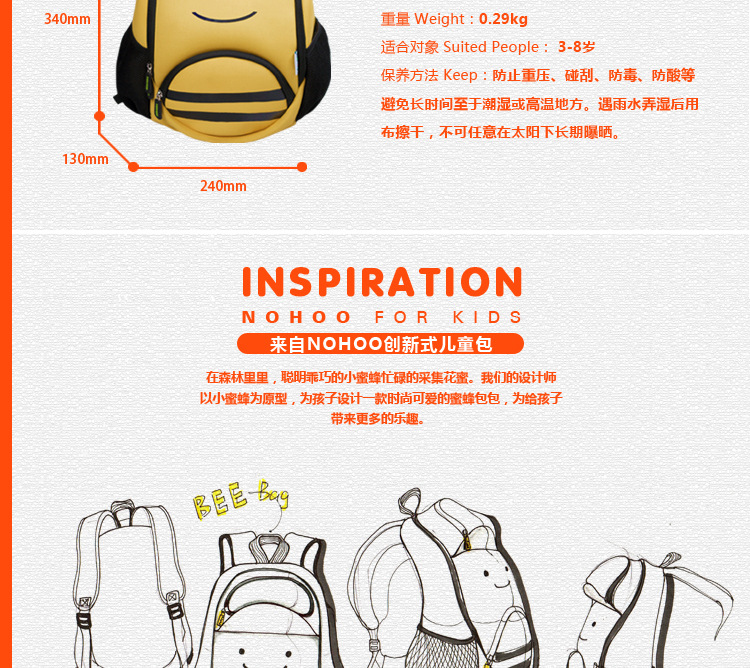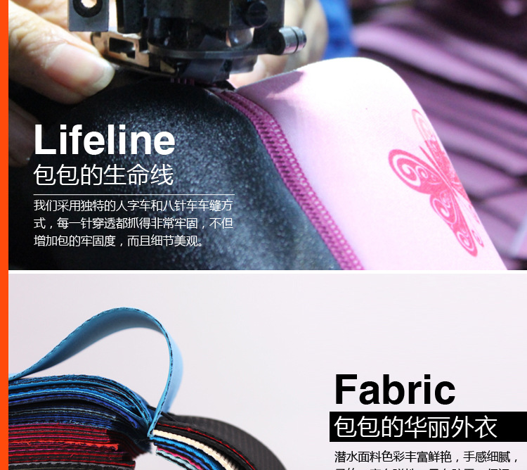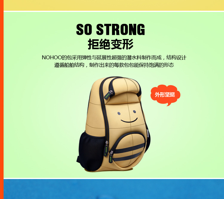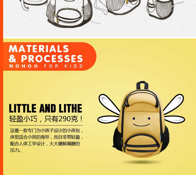 u0026nbsp;诺狐采用独特的Neoprene潜水料,有别于一般材质,潜水料具有良好的柔软性与弹性,防水防潮,质地轻盈等特点,有适用于专业潜水衣及各种运动领域,其立体塑形极具个性的特性更风靡时尚圈。诺狐童包独特的设计与良好的材质有别于一般的儿童包,立体结构剪裁,鲜艳大胆的配色,打材料的特性发挥到淋漓尽致,为我们的用户提供缤纷、舒适、健康的产品体验。