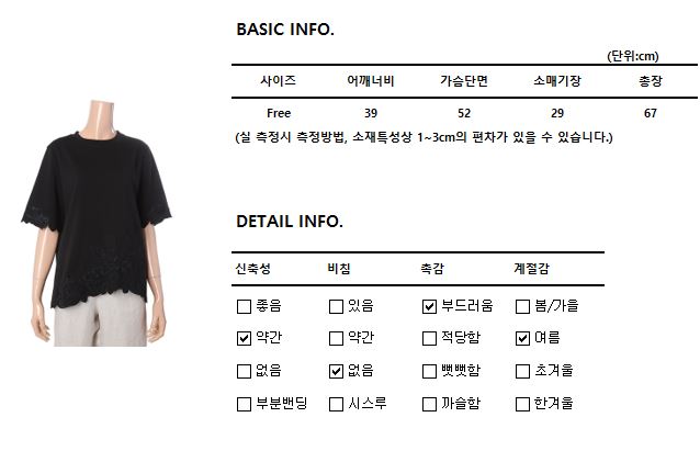 깔끔하고 자수가 포인트인 블라우스겸 티셔츠입니다