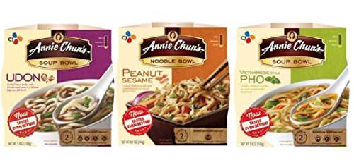 Annie Chun's Soup & Noodle Bowls 3 Flavor Variety Bundle: (1) Annie Chun's Udon, (1) Annie Chun's Pho, and (1) Annie Chun's Peanut Sesame, 5.9-8.7 Oz. Ea.