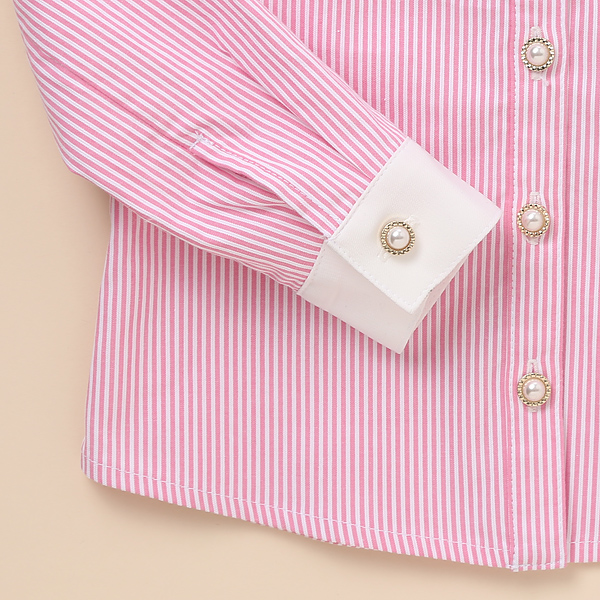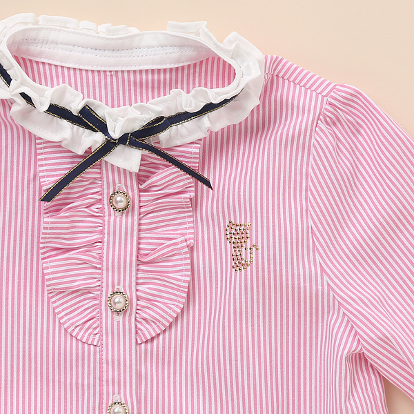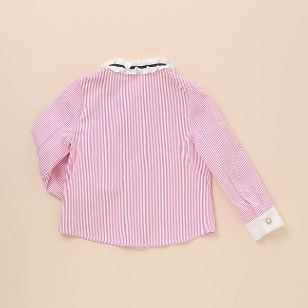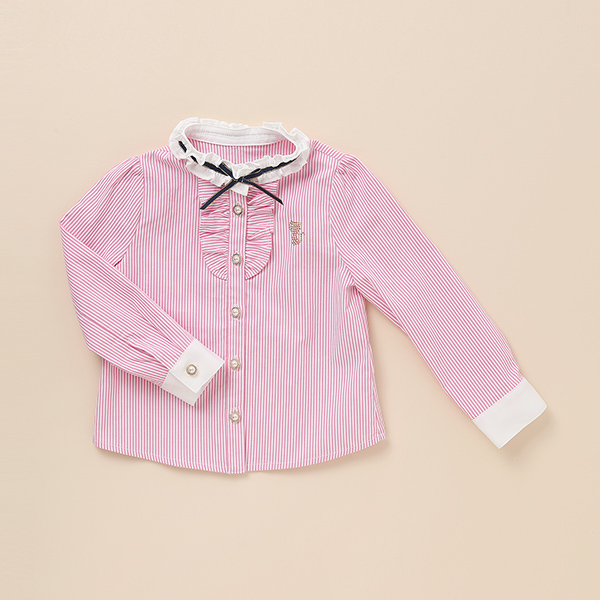상품설명 잔 PK 스트라이프 원단으로 만들어진 블라우스 입니다. 목에는 화이트 우븐의 배색 프릴 원단으로 만들어졌으며 네이비 컬러의 리본 테이프로 마무리 지어줬으며 제원단 프릴장식으로 귀여운 느낌을 살려주었습니다. 골드 고양이 핫피스 장식으로 고급스러운 프랜치캣의 포인트로 마무리된 블라우스로 러블리한 타운룩을 연출할수 있습니다.