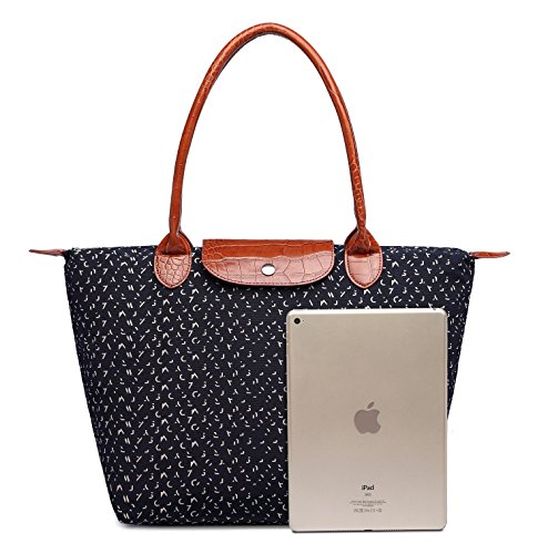-. Feature : Wear resistant and water repellent nylon as main material, strengthened PU leather handle, sturdily constructed with detailed streamlined stitching and fully lined with polyester fabric. Top closure with YKK zipper. / Very lightweight, less than 10 ounces. Spacious, fit up to 16˝ laptop. Size: 18˝ wide × 12˝ tall × 7˝ deep, 9" shoulder drop. / Features a zippered main compartment, two interior slip pockets and one interior zipper pocket to organize your essentials. Eco-friendly manufactured without any chemical smell. / Folds into a compact shape for travel and storage. Perfect for shopping, work, travel, gym or any other daily occasions. / FREE wristlet wallet (a $12.99 value): features three separate zippered compartments (for your phone, keys and more!) and a detachable wrist strap.