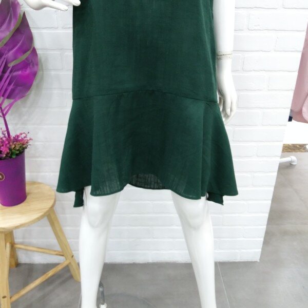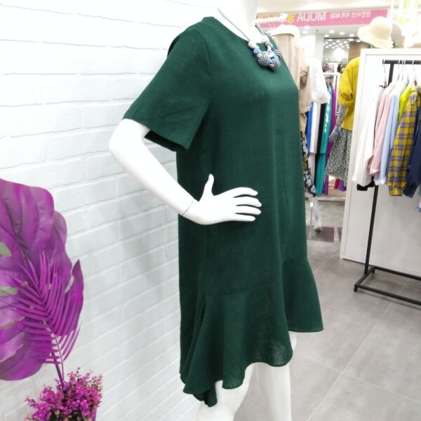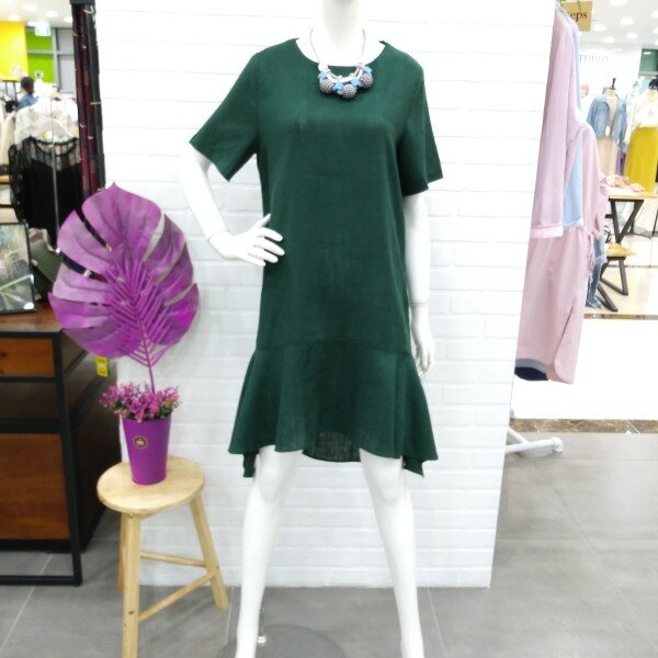 시원한 린넨 소재의 언발 원피스로 목뒤 끈라인으로 포인트들어가고 비침이 있어 속치마 입어주시는 센스~깔끔하면서도 언발프릴로 여성스러운 원피스 입니다