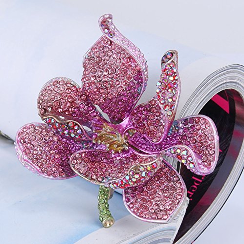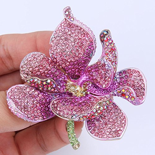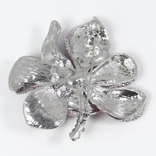 EVER FAITH Women's Austrian Crystal Orchid Flower Petal Brooch Pink Silver-Tone