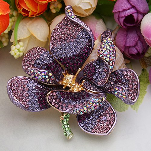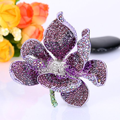 EVER FAITH Women's Austrian Crystal Orchid Flower Petal Brooch Purple Silver-Tone