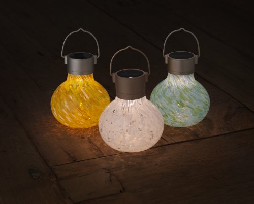 Allsop Home and Garden Solar Tea Lantern, Handblown Glass with Solar Panel and LED Light, Weather-Resistant for Outdoor Deck, Patio, Garden, Wedding, Saffron, 1-Count