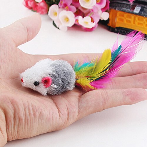 -. Title : Pack of 5 Furry kitten Mice Cat Toys with Feathers and Fur