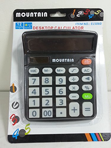 -. Binding : Electronics -. Brand : PSwholesale -. Color : Black -. EAN : 0642419654803 -. Feature : Solar and 2 Double Battery Power Capability! (no need for batteries as long as you are in the light) / Large Buttons Offer Ease Of Use And Reliability. / 12 Digits Screen. / 100% Accuracy With Numbers. / Always buy from PSwholesale For The Highest Quality Goods! -. Label : PSWholesale -. Manufacturer : PSWholesale -. MPN : EL5060 -. PackageQuantity : 1 -. PartNumber : EL5060 -. ProductGroup : CE -. ProductTypeName : CALCULATOR -. Publisher : PSWholesale -. Studio : PSWholesale -. Title : PSWholesale (Black) 12 Digit Mountain Calculator For Home or Office Universal Functionality And Solar/Battery Powered With Large Buttons -. UPC : 642419654803