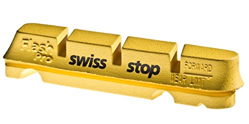 SwissStop is one of those rare companies whose obsession puts them above their peers in the industry. You see, SwissStop pads are made by a Swiss company named Rex Articoli SA. They manufacture high-tech rubber bits for industry. In fact, SwissStop brake pads are the only consumer item that they produce. Their 70 years of experience in technical compounds allows them to produce brake pads with highly tuned performance characteristics. SwissStop pads have superior stopping power, low pad-wear rates, very linear brake response, and a smooth, quiet performance. Think of them as the Assos or the SRM of brake pads. FlashPro means one thing: These are compatible with Shimano and SRAM brake pad holders. To better the performance over the previous Flash pads, the FlashPro has deeper asymmetrical grooves and a more pronounced leading edge profile. The idea is to "squeegee" away more water to improve the wet weather performance and the deeper grooves help give the pads better modulation. They increased the total pad depth with more material above the wear line -- good news for those folks that live in the high mountains. The Original Black compound is SwissStop's standard all-purpose replacement pad for aluminum rims. It's ideal if you don't use carbon rims and if you don't relish the idea of riding in the rain. Please note that they do just fine in the rain, but SwissStop makes better pads for you if you find yourself in the wet stuff on a regular basis. One order gets you 4 pads total -- enough for one bike.Feature