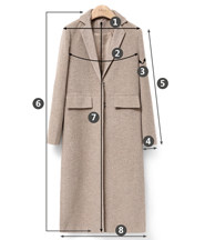 | 尺码 | ①肩宽 | ②胸围 | ③上臂围 | ④袖口围 | ⑤袖长 | ⑥前衣长 | ⑦后中长 | ⑧下摆围 | ||