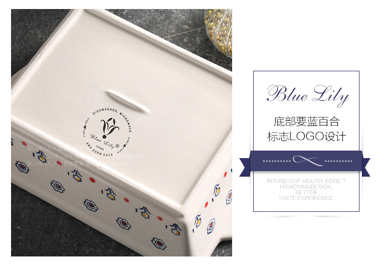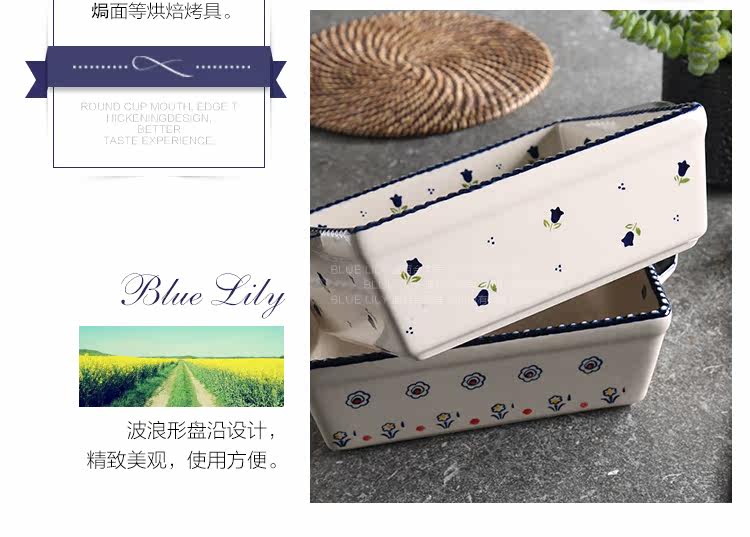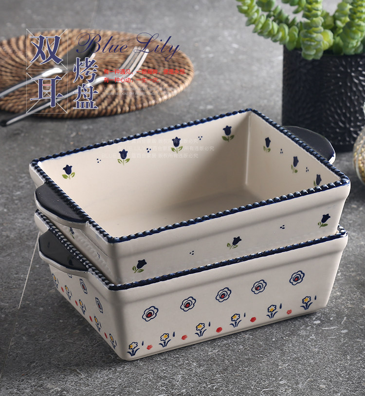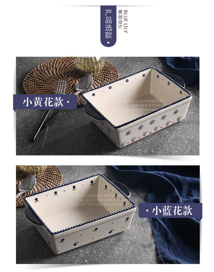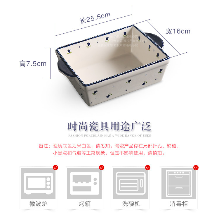 小清新碎花家用长方形双耳陶瓷烤盘小号烤箱烘焙盘餐
