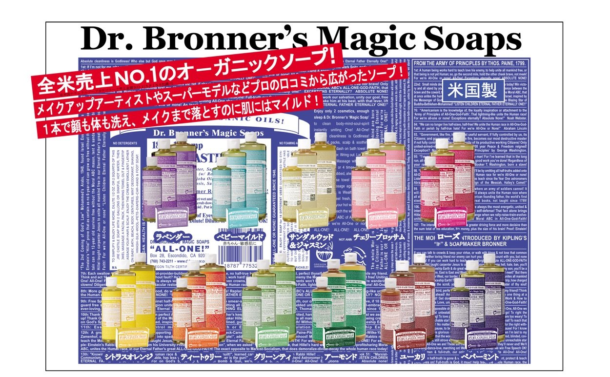 In 1929 Emmanuel Bronner brought the US's unique prescription of high-quality liquid soap and bar soap, and in 1948 he began making magic soap with the current prescription.