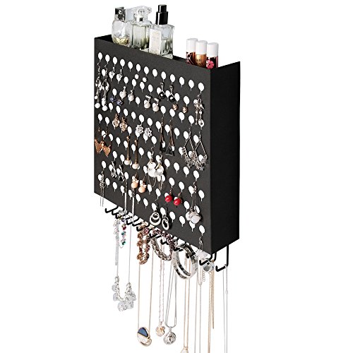 Studio : JackCubeDesign Publisher : JackCubeDesign Binding : Kitchen Product Description PERFECT ORGANIZATION FOR SPACE SAVING A clever, simple, beautiful way to organize your earrings and it solves the problem of eliminating messy earrings for space saving HIGH QUALITY Made by high quality clear black iron and acrylic tray on the top so it look really stylish, gorgeous and luxurious ENOUGH STORAGE FOR EARRING AND JEWELRY With 113 holes, it can hang as many as earring you want to hang and under 19 hooks to hang bracelet, necklace perfectly. And additional top acrylic tray for any stuffs you want STYLISH AND LOVELY DESIGN Gorgeous design to match everywhere and loved by the girl, college students, movie stars and royalty around the world as a fabulous gift idea for anyone who likes earrings and jewelry SIZE 13.6 X 2.32 X 16.1 inches 0 |
