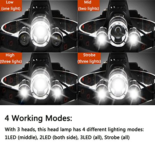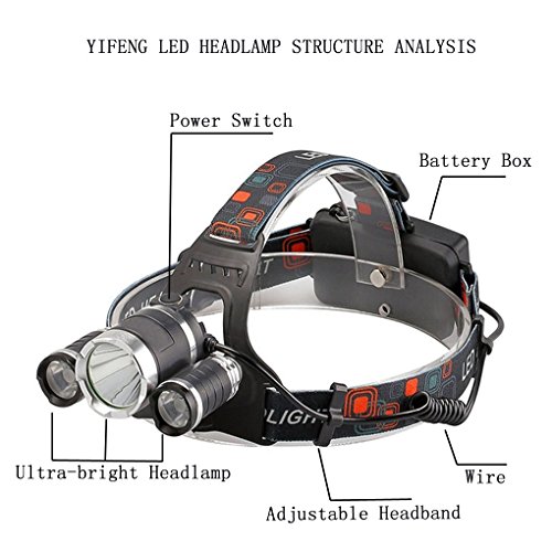 LED Headlamp Flashlight, YIFENG Super Bright Helmet Light , 4 Light Modes with Car Charger & Wall Charger & USB Cable for Camping Biking Hunting Fishing