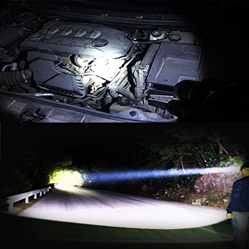Super Bright LED, Lifespan reach up to 100,000 hours, max output up to 5000 lumen, powered by 2 pieces of rechargeable batteries (Not Included)