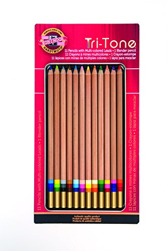 Koh-I-Noor Tri-Tone Multi-Colored Pencil Set, 12 Assorted Colors in Tin and Blister-Carded (FA33TIN12BC)