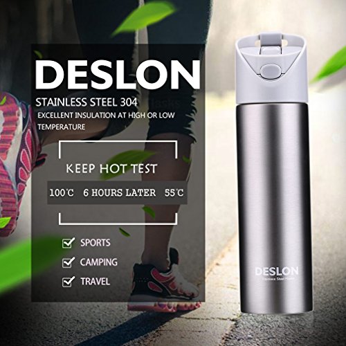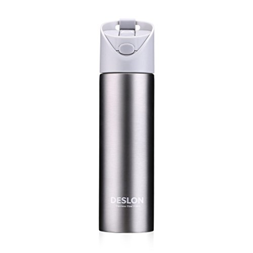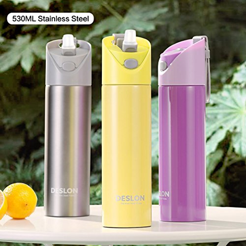 DESLON Kids Straw Water Bottle Button Open Women BPA Free Plastic Portable Travel Mug Stainless Steel 304