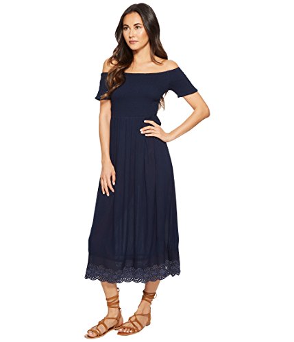 Off shoulders dress in viscose crepe with smock elasticated top body and sleeves