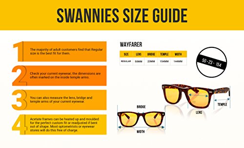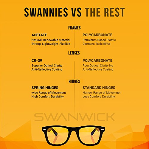 Enjoy Deep Restorative Sleep! Eliminate Sore Eyes! Do you struggle to get to sleep at night? Do you suffer sore eyes and headaches from long hours in front of a computer? Here's the Solution! The world is filled with artificial blue light from electronics such as TVs, phones, tablets computers. Scientists find that exposure to artificial light in the evening and long hours of screen time ruins your sleep and causes sore eyes and headaches. Bad sleep leads to depression, weight gain, lower sex drive, and increased risk of heart disease. There is a SOLUTION! We guarantee Swannies blue light blocking glasses will supercharge your sleep and health by blocking harmful blue light from electronic devices while letting in all other safe light. Wearing the computer glasses at least an hour before bedtime leaves you free to watch TV and use devices without ruining your sleep. Wear when working on computers or gaming to stop sore eyes headaches. ? Designed in California by Swanwick Sleep, an FDA registered Medical Device Establishment. ? Swannies blue blocking glasses computer glasses are a natural sleep aid suitable for men, women children fully registered by the FDA. ? Anti glare, anti fatigue, anti jet lag blue blocker glasses are a safe and comfortable sleep aid that prevents insomnia and other sleep disorders. ? Designed for supreme comfort, even when worn for long periods of time ? 100% money back guarantee = risk-free purchasing ? Extremely limited stock. Special introductory discount offer won't last! ? Free Shipping