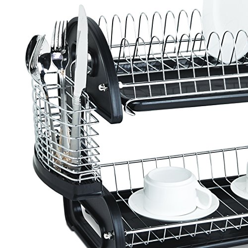 Home Basics Dish Plastic Drainer, 2-Tier, Black