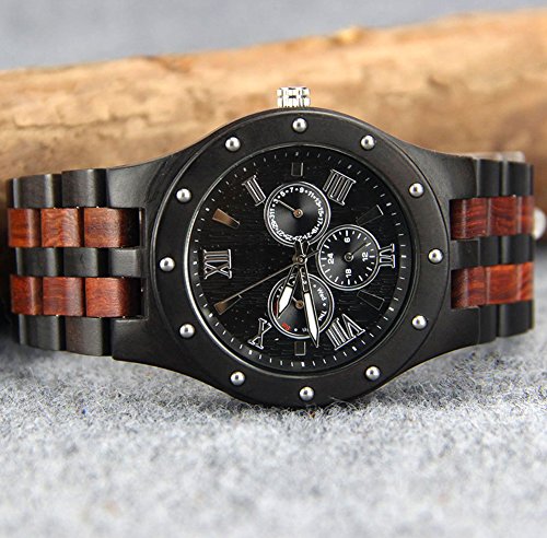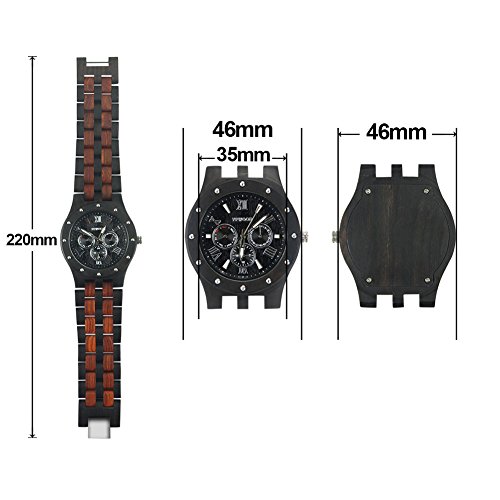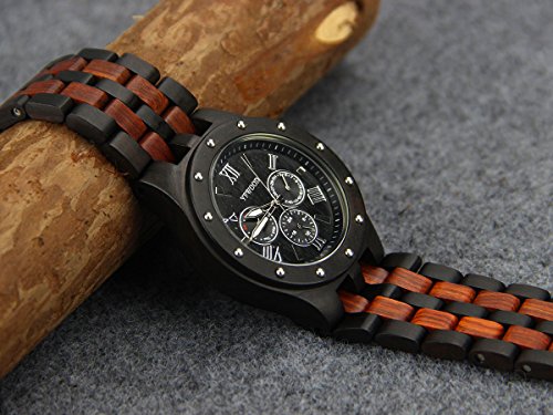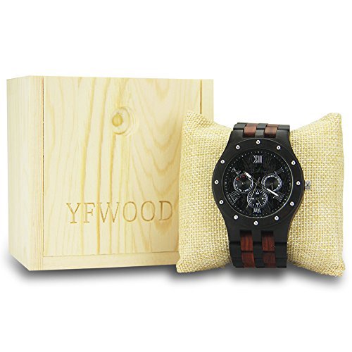 YF-WOOD YFWOOD 남성에게 압도적인 인기 를 가지고 있는 천연 목제 손목시계 맨즈 패션 우드 시계목의 시계 유니섹스 날짜 24시 요일 맨즈 시계