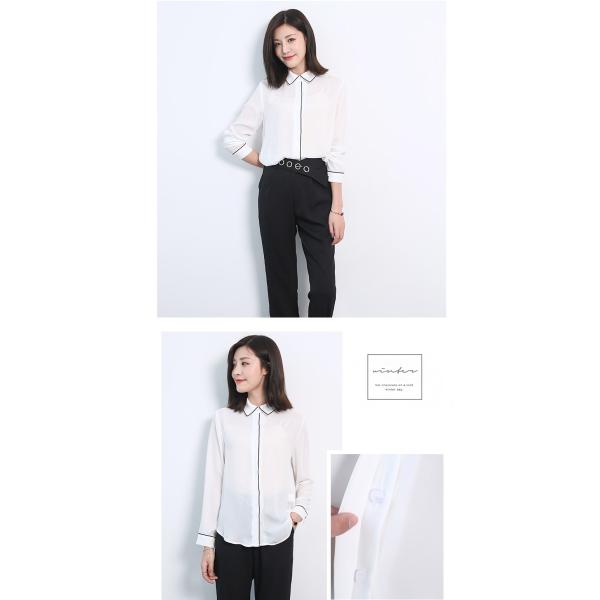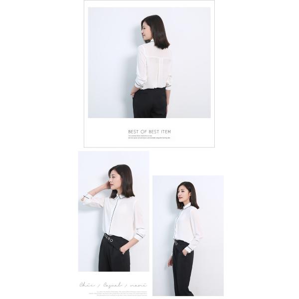パイピングデザインシャツブラウス レディース トップス 長袖 無地 2017 新作涼しげなシフォン素材のシャツブラウスは夏コーデにぴったり♪シンプルで合わせやすいデザインは、幅広いスタイルと相性抜群!ぴったりとしすぎないサイズ感ながら、綺麗なシルエットで着られます◎【カラー】ホワイト【サイズ】[S]丈66/胸囲92/袖丈57.5/肩幅38(cm)[M]丈67/胸囲96/袖丈58.5/肩幅39(cm)[L]丈68/胸囲100/袖丈59.5/肩幅40(cm)※製品により多少の誤差が生じる場合がございます。【素材】ポリエステル【ご使用上の注意】着用に問題のない製法のほつれ、商品の性格上、開封された商品・一度でも着用されました商品の返品・交換は一切お受け致しません。イメージと違う、サイズが合わない等の理由での返品は一切受け付けておりません。購入後のサイズ交換は対応しておりません。生産終了後すぐ発送しているため匂いがある場合がございます。ご了承ください。【生産国】made in china※商品はご注文を頂いてから2週間前後の到着となります。