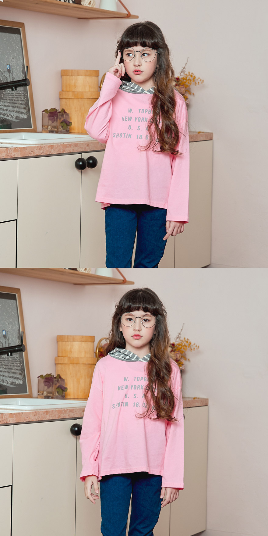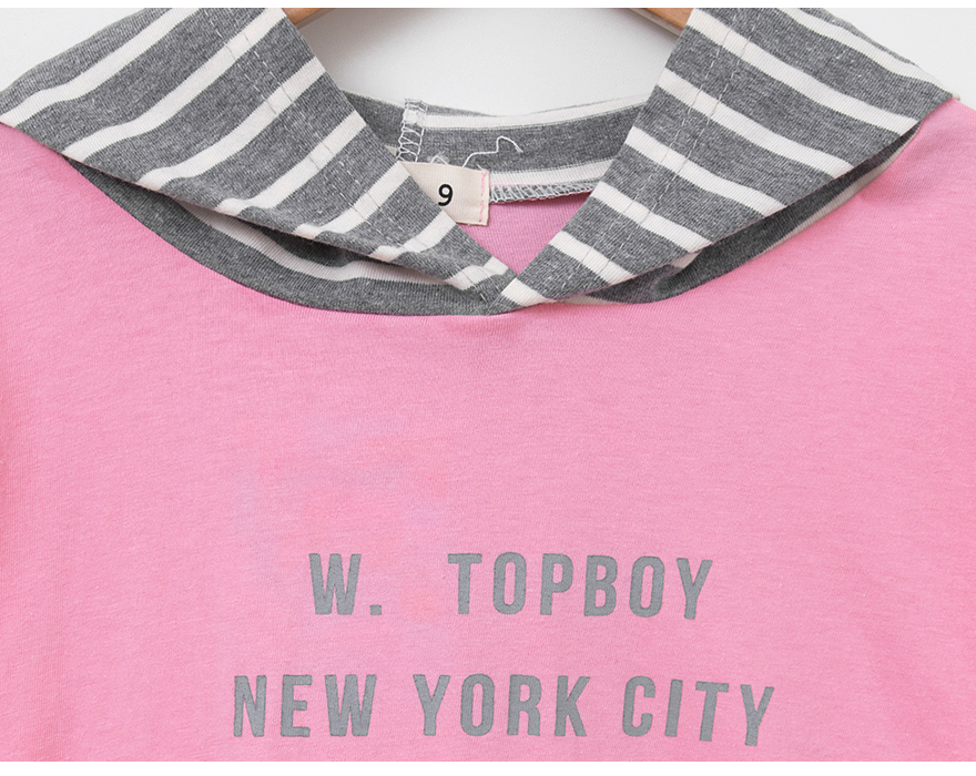 캐주얼한 무드의 탑 후드 배색 티셔츠 소개할게요~ 산뜻하고 유니크한 배색으로 밝고 활발한 느낌을 주는 제품이에요! 앞판에는 레터링 나염으로 심심하지 않게 포인트를 주었어요~ 얇은 원단으로 디자인해 따뜻한 날 가볍게 단독으로 입혀주셔도 예쁘고 후드집업, 점퍼 안에 이너로 간편하게 입혀주시기도 좋아요;)