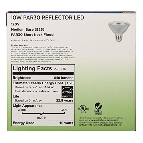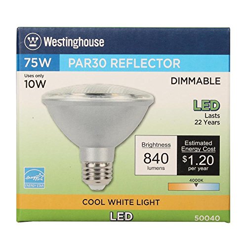 Westinghouse 5004000 75-Watt Equivalent PAR30 Short Neck Flood Dimmable Cool White Energy Star LED Light Bulb with Medium Base