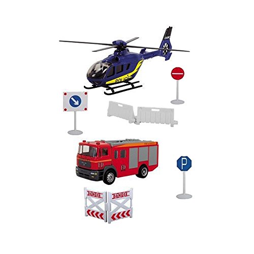 -. Title : Dickie Toys 203343003 - Rescue Team, Feuerwehrauto und Helikopter mit Zubehör, 12 cm
