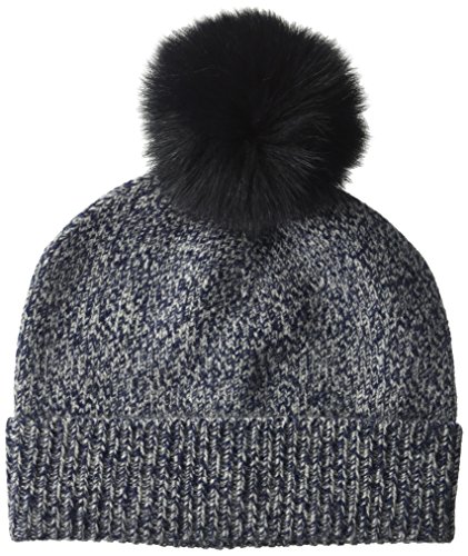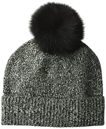 Product Description100 percent cashmere jersey marled knit cuffed cold weather hat with real fox fur pom pom0